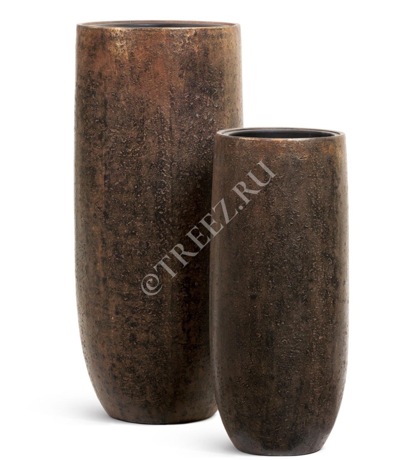 Кашпо TREEZ Effectory - Metal - Высокий округлый конус - Rough с золотой патиной