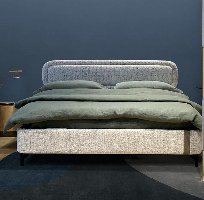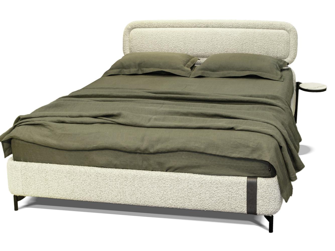 Высокие ножки, стильные округлые формы и функционал отличают эту модель. Возможность встроить боковые столики решает проблему небольших спален или позволит освободить дополнительное пространство.