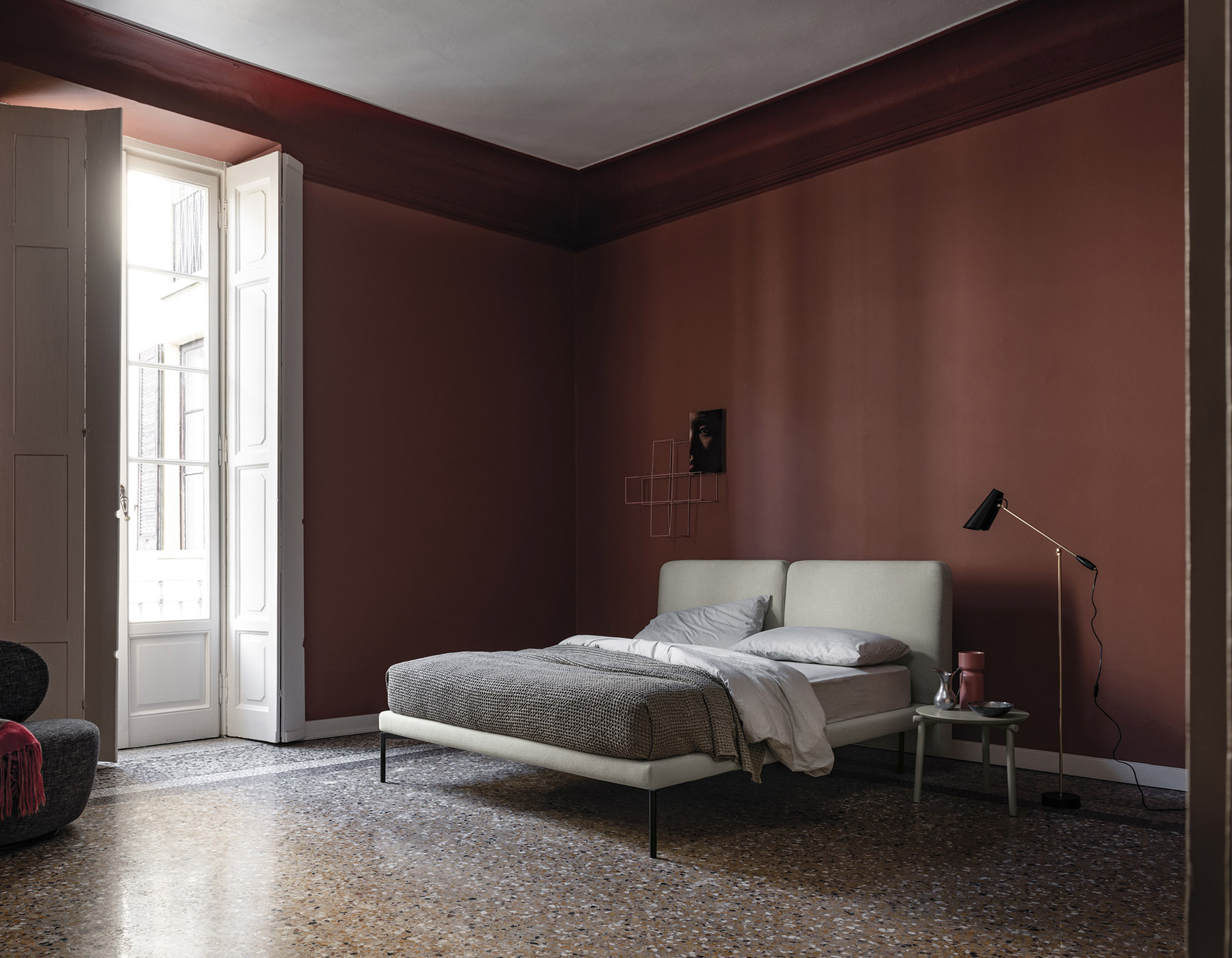 Элегантность - единственная красота, которая никогда не исчезает. Эта фраза Одри Хепберн подходит для мягкой кровати Feel, навеянной идеалом гармонии, выходящим за рамки времени и моды. Изящная по форме, мягкая на ощупь, обитая изысканными тканями, она отличается также уютным двойным изголовьем со слегка изогнутым профилем.