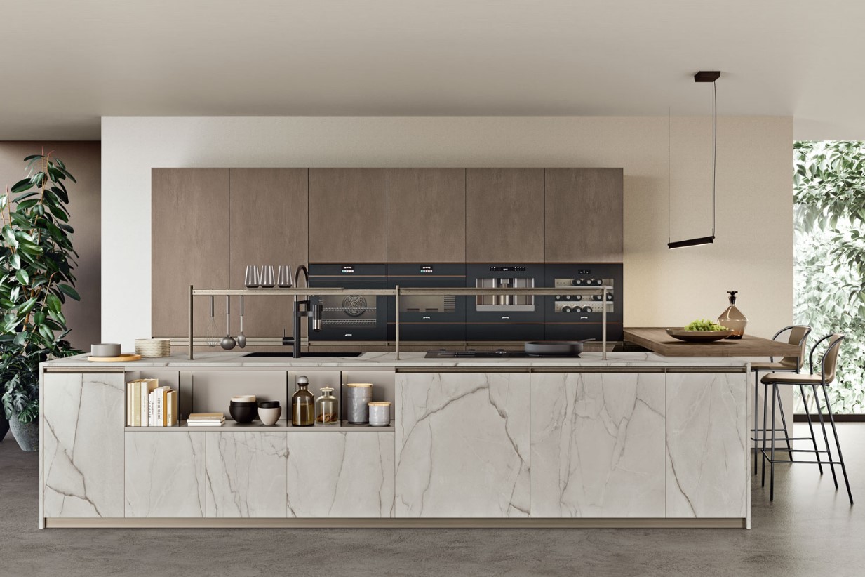 Коллекция Immagina включает в себя множество новинок. Отделки и цвета подобраны в соответствии с современными стилистическими тенденциями. Новые аксессуары и технологические элементы позволяют создать кухню, которая идеально подходит для любых потребностей.