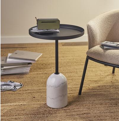 Материалы: столешница и ножка – сталь, основание – мрамор. Максимальная нагрузка - 15 кг. Диаметр: 40 см. Высота: 59 см. Цвет: черный/белый.