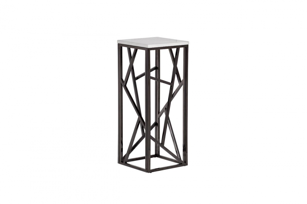 Стол журнальн.высокий, иск.мрам/тем.хром 30*30*75
