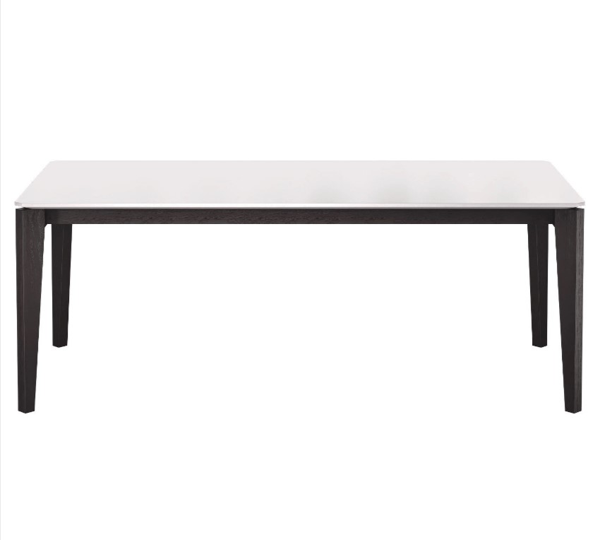 Столешница — приятный светлый матовый оттенок. Ножки из шпонированного массива березы — темно-коричневая (почти черная) древесина.