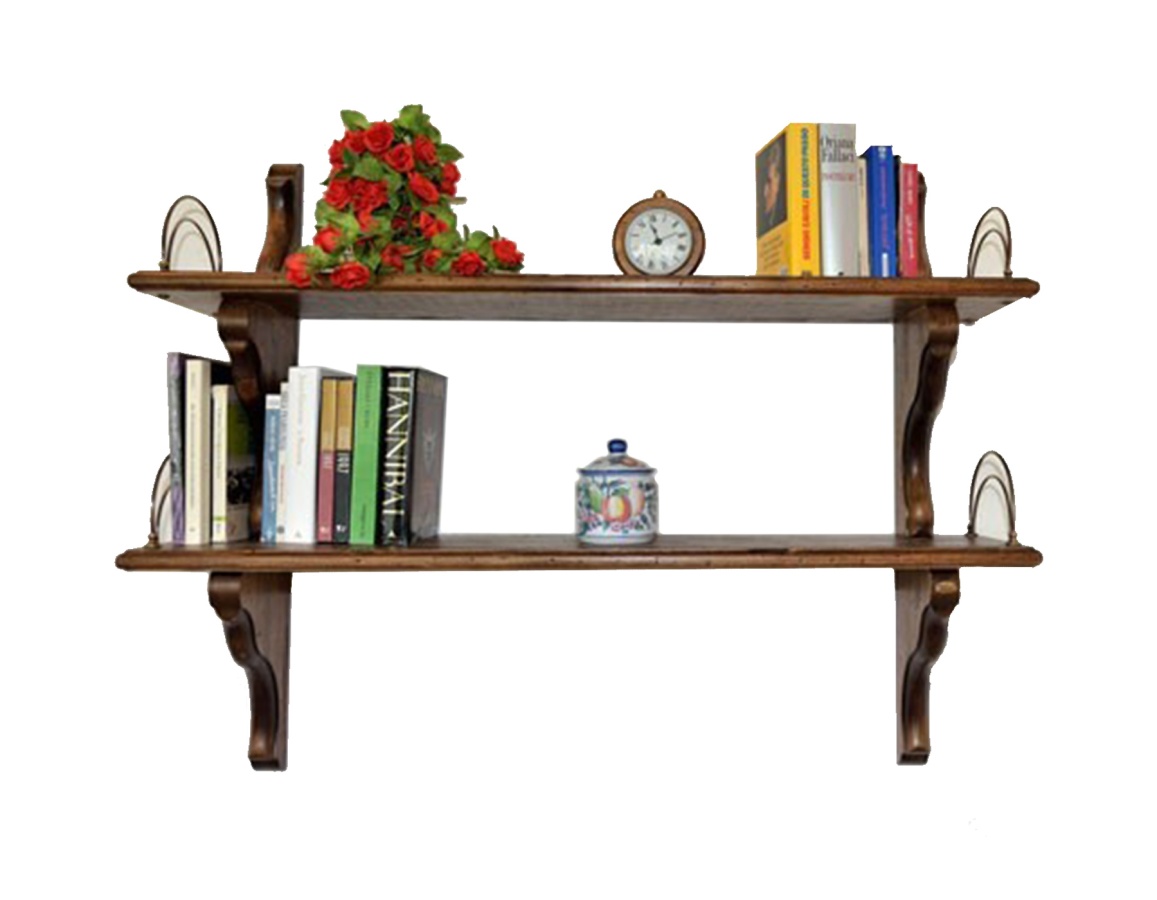 - Классический дизайн: Изящные деревянные полки с фигурными кронштейнами в винтажном стиле.