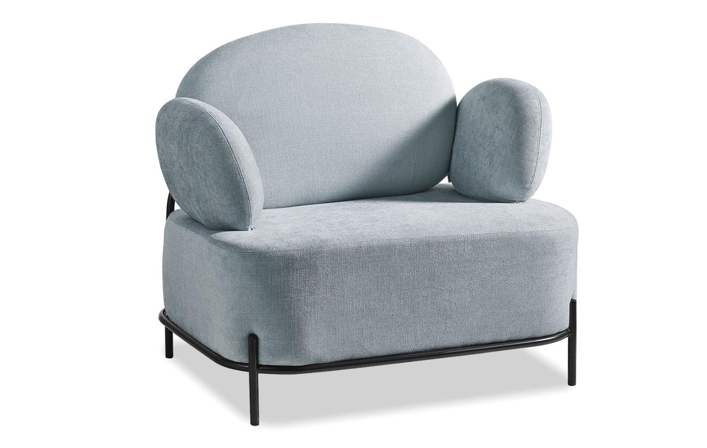 Дизайн модели радует глаз: мягкое сиденье и спинка с подлокотниками покрыты прочной тканевой обивкой, металлические ножки окрашены в черный цвет.
