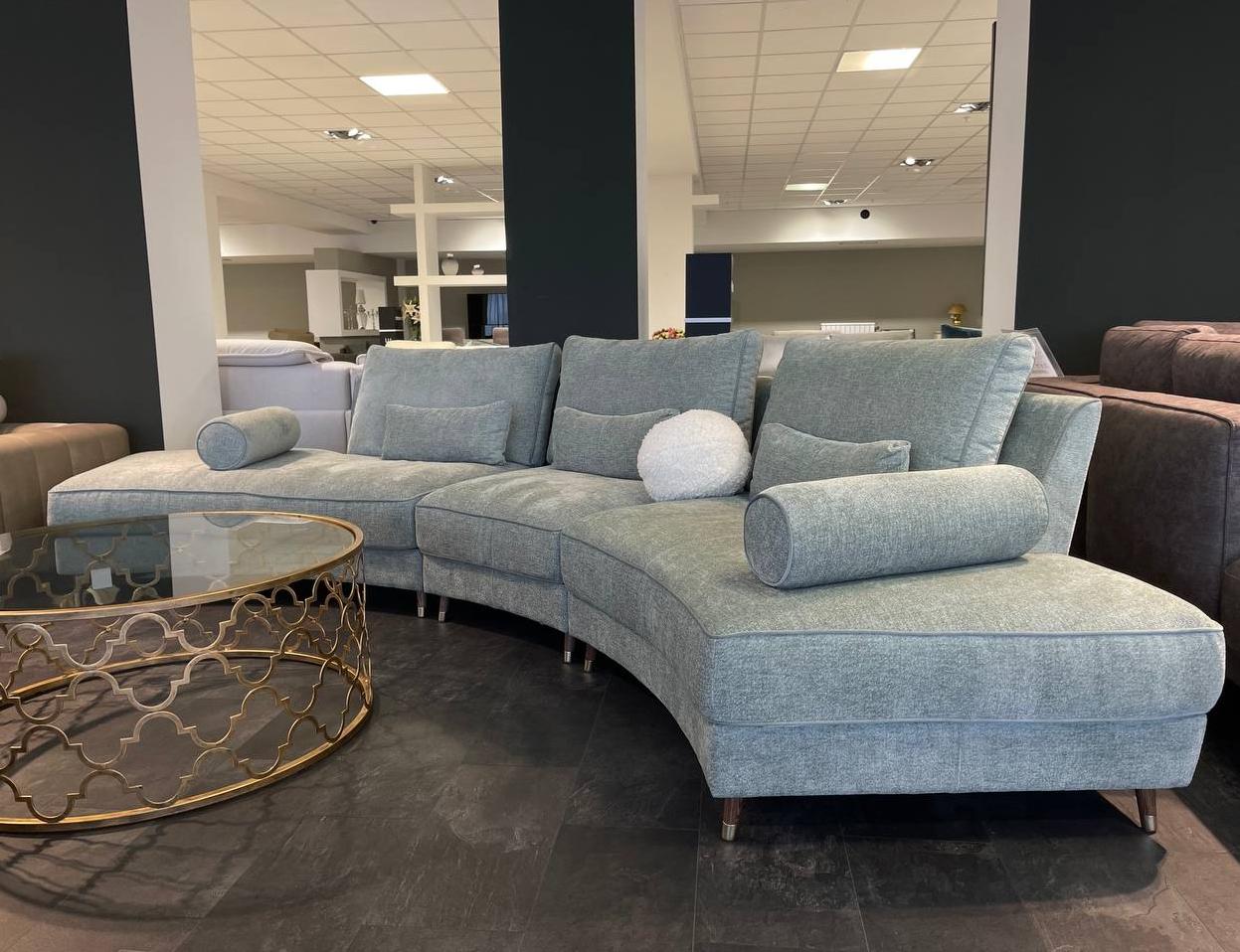 Создайте неповторимый интерьер с радиусным диваном. ⠀ Необычная модель всегда будет в центре внимания — и дома в гостиной, и офисе в зоне отдыха или ожидания. Так и хочется подойти и присесть.Мягкий диван изогнутой формы с валиками и подушками, декоративными элементами и дополнительными опциями делает атмосферу интересной и уютной, а помещение приобретает особый шарм.